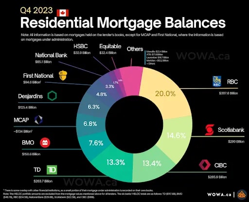 TD has the largest HELOC portfolio among Canadian banks. It specifically has $117.6 billion of HELOC on its balance sheet, including $86.9 billion of amortizing HELOCS. TD also holds $56.5 B in mortgages in its US retail banking division.